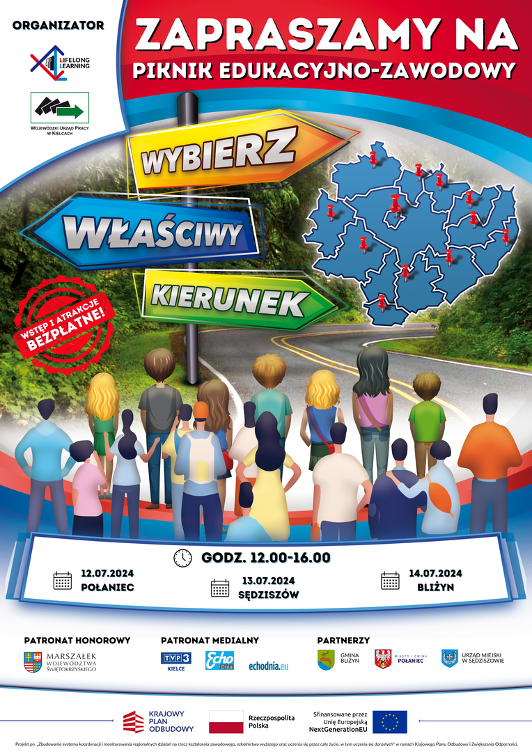 Wojewódzki Urząd Pracy wraz z Biurem Koordynacji ds. WZK zapraszają na cykl 20 pikników edukacyjno-zawodowych w każdym ze świętokrzyskich powiatów.
